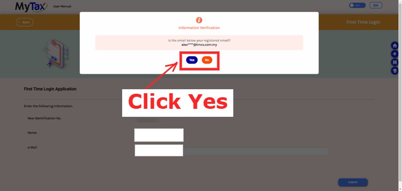 4) It will prompt you for Information Verification to verify your current email. Click “Yes” if the email is correct