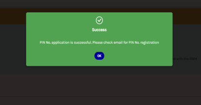 6) After clicking submit, a PIN No registration will be sent to the specific email
