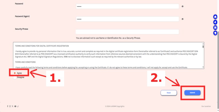 Tick “I agree” for the terms & conditions section and finally click “Submit”