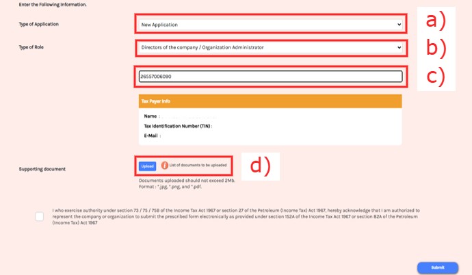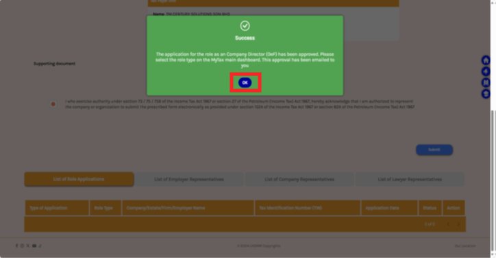 | b) | For role choose “Director of the Company” for SDN BHD & “Business Owner” for Sole Proprietorship, Enterprise or Partnership |