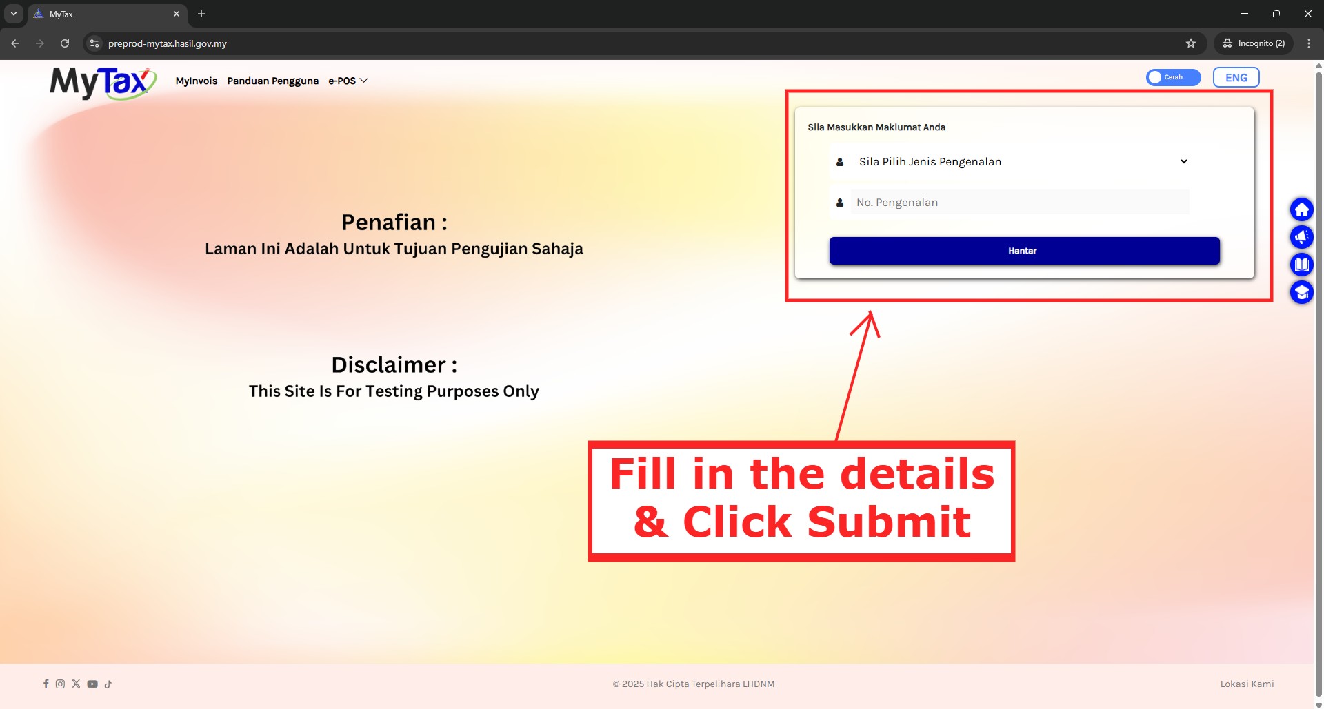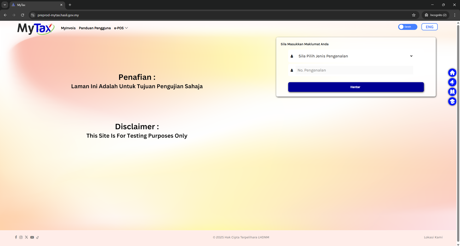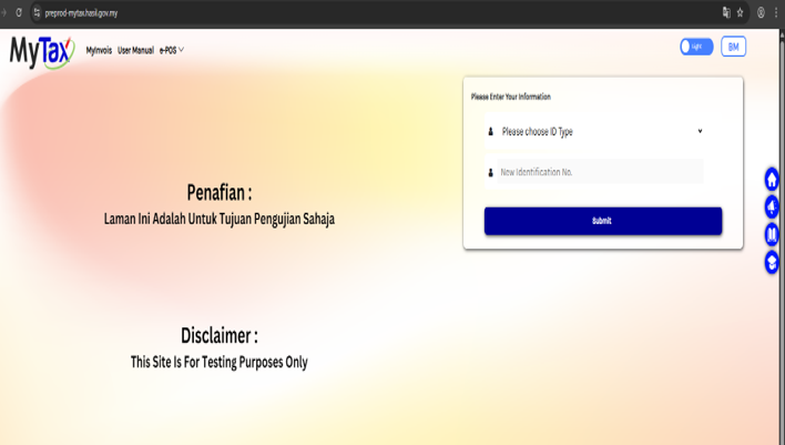 1) Link for MyTax Preprod (For Sandbox/Testing): https://preprod-mytax.hasil.gov.my/
