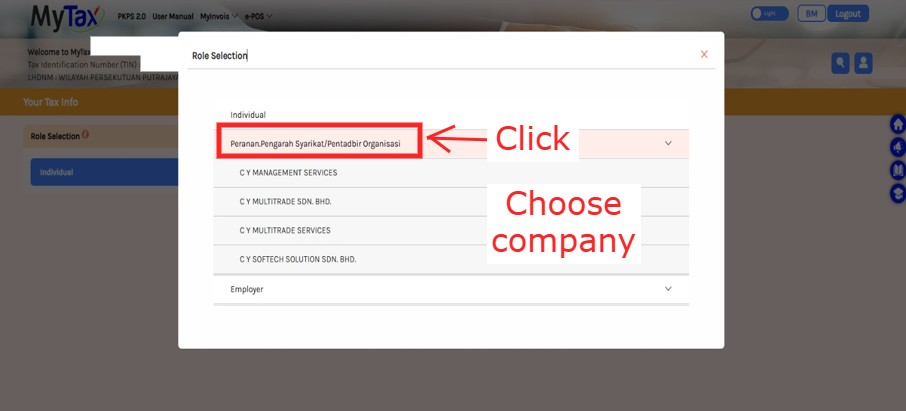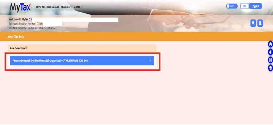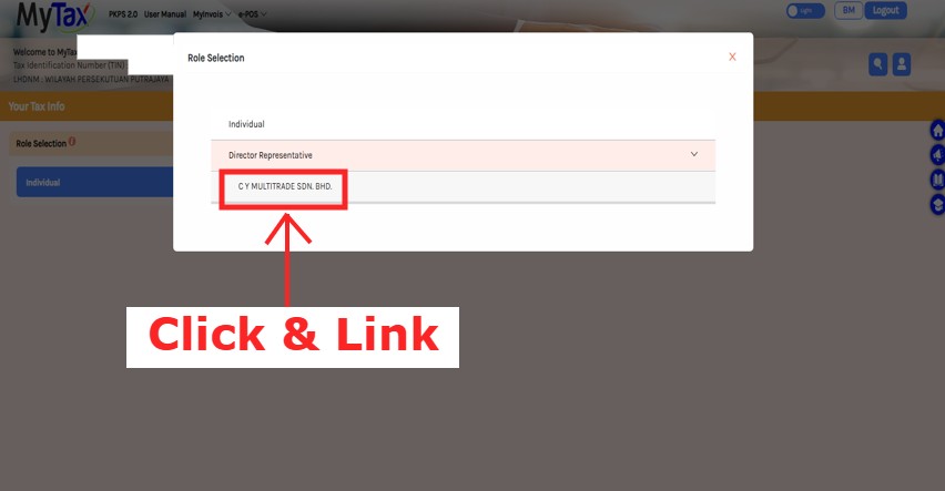 7) That IC / Individual login will then be able to access this company’s MyInvois Portal
