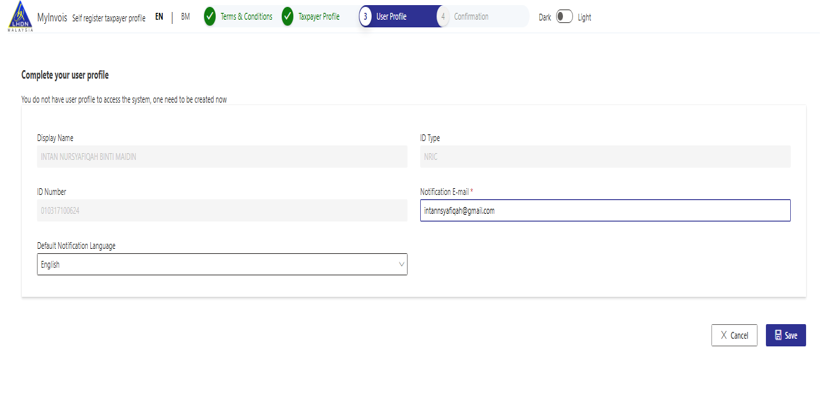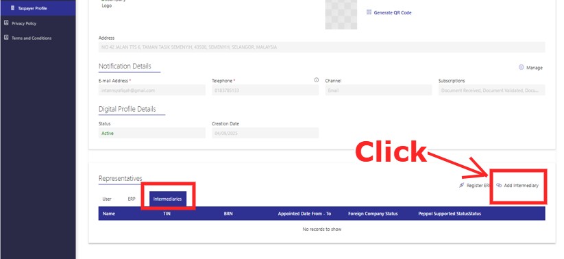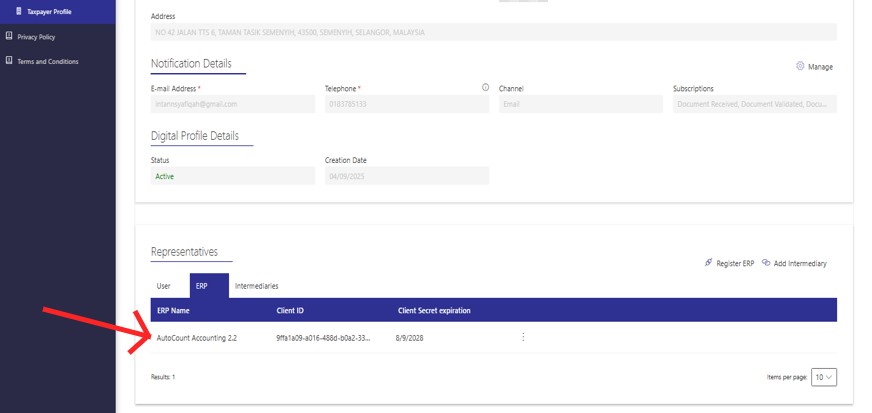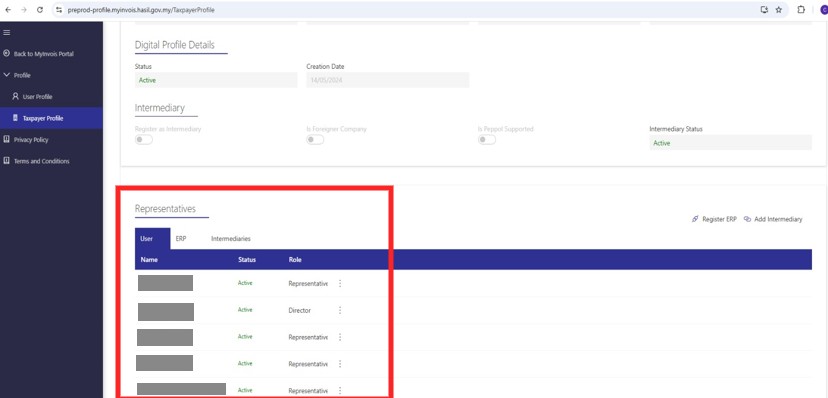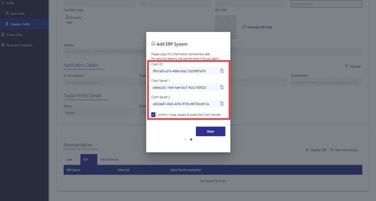 6) After linking your company, go to MyInvois Preprod & setup your company / taxpayer profile