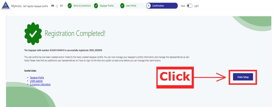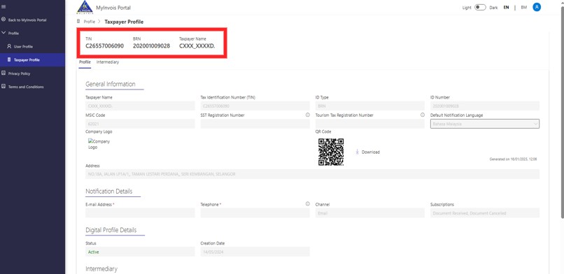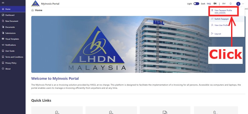 5) At MyInvois Portal, click on your Taxpayer Profile