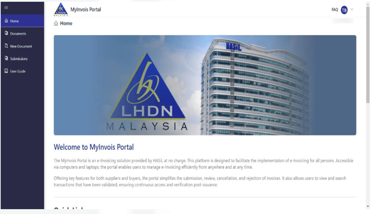11) You will then be directed to your company MyInvois Portal / Preprod page