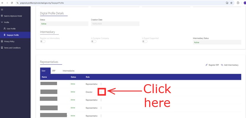 2) At MyInvois Preprod, click “VIEW TAPAYER PROFILE” if taxpayer profile is your name