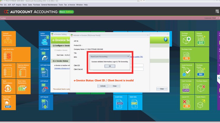 13) System will attempt to connect to MyInvois Preprod and if success, it will prompt you a success message.