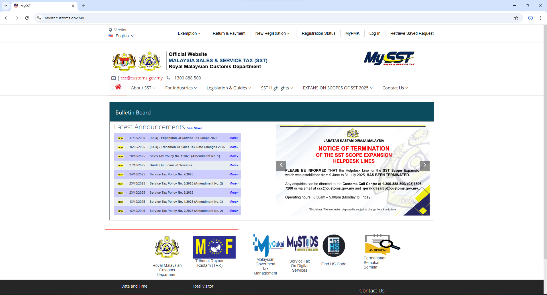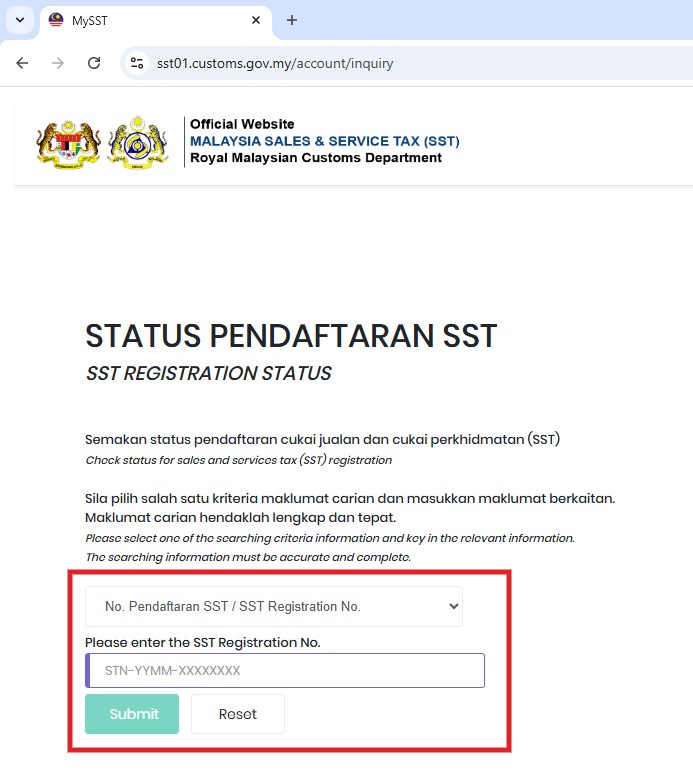 Registration Status: https://sst01.customs.gov.my/account/inquiry