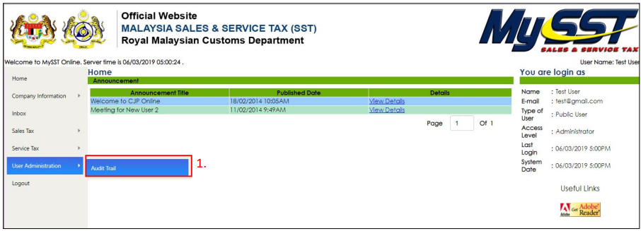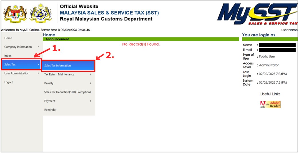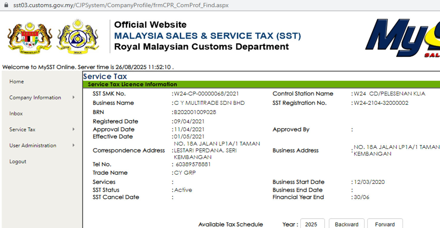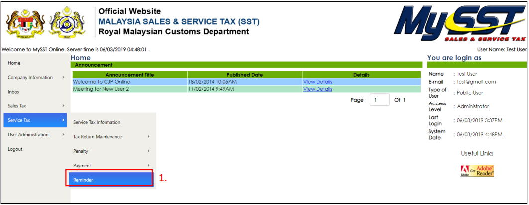 Login page link: https://sst03.customs.gov.my/CJPSystem/frmLogin.aspx