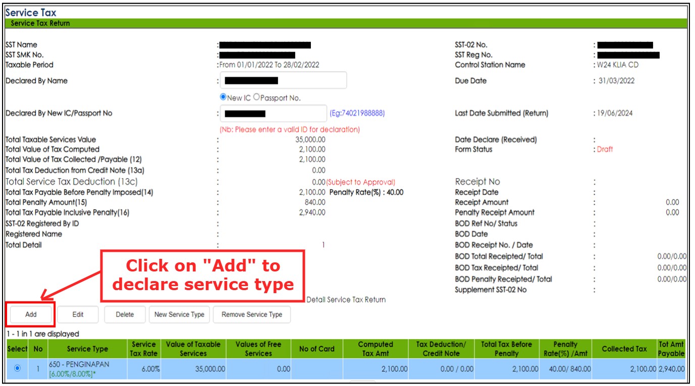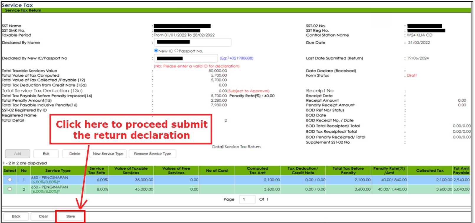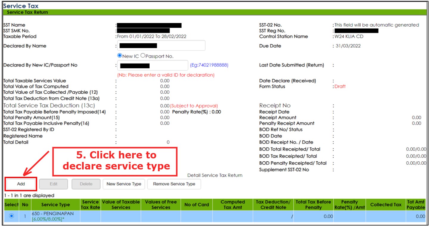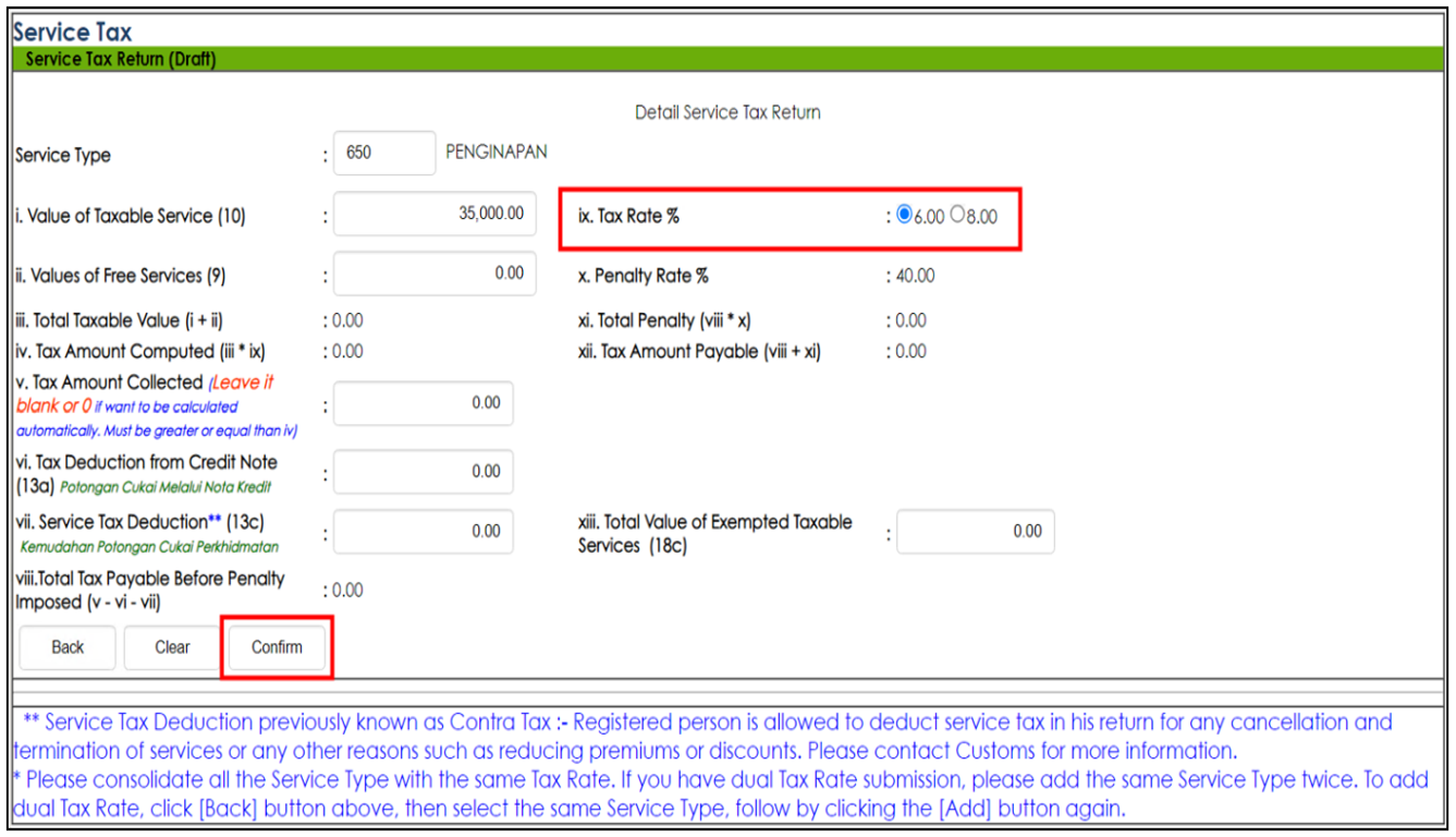 Guideline (Source from): https://mysst.customs.gov.my/assets/document/System%20Guides/Return%20&%20Payment_Same%20Service%20Different%20Tax%20Rates_User%20Manual.pdf