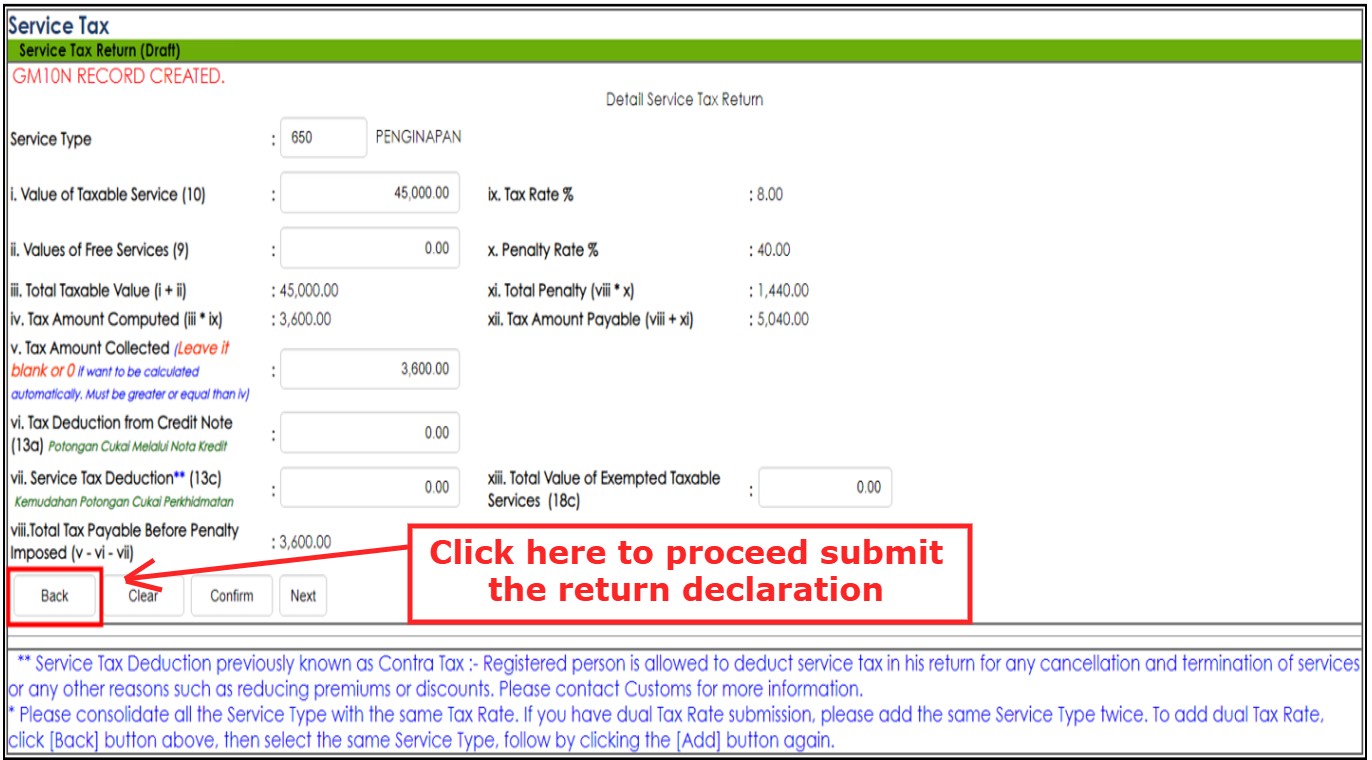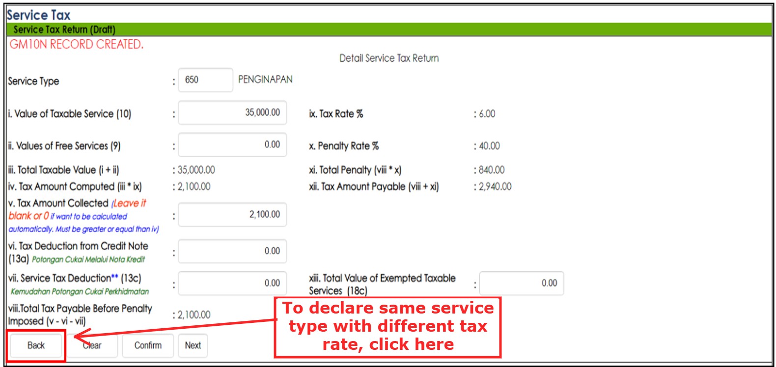 Service type with 6% tax rate will be created. You can click “Back” button to declare with different tax rate.