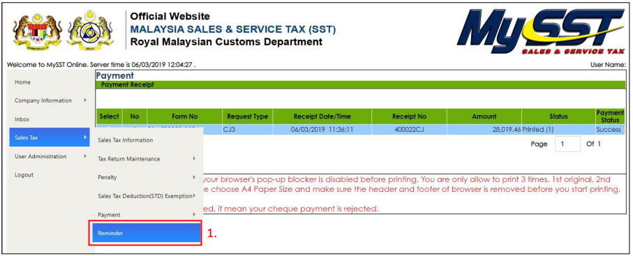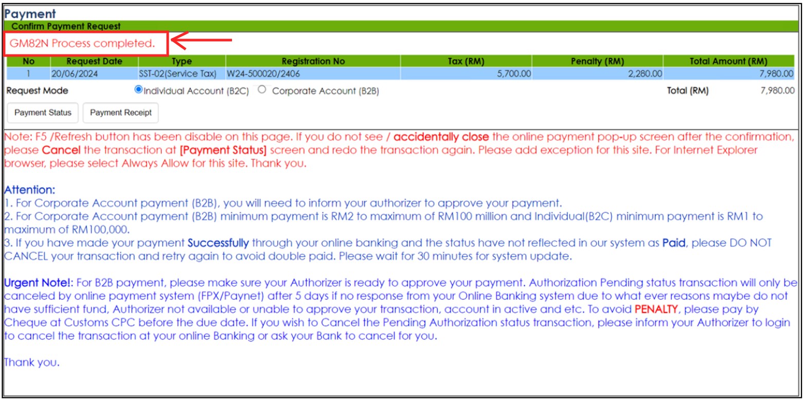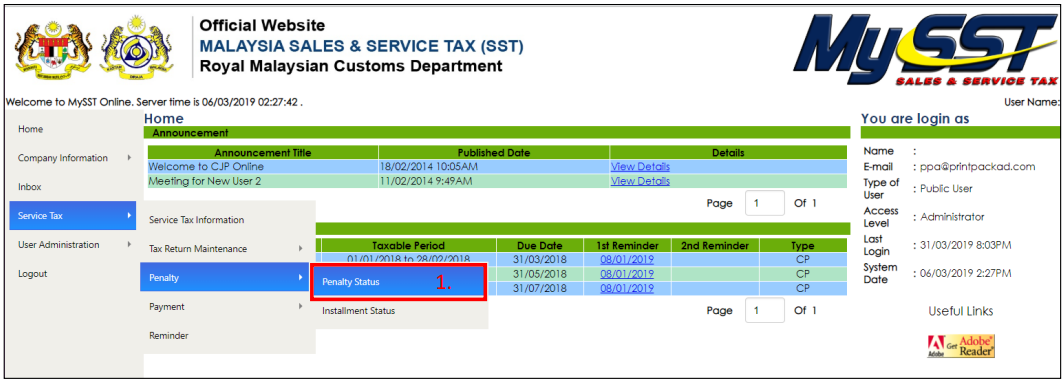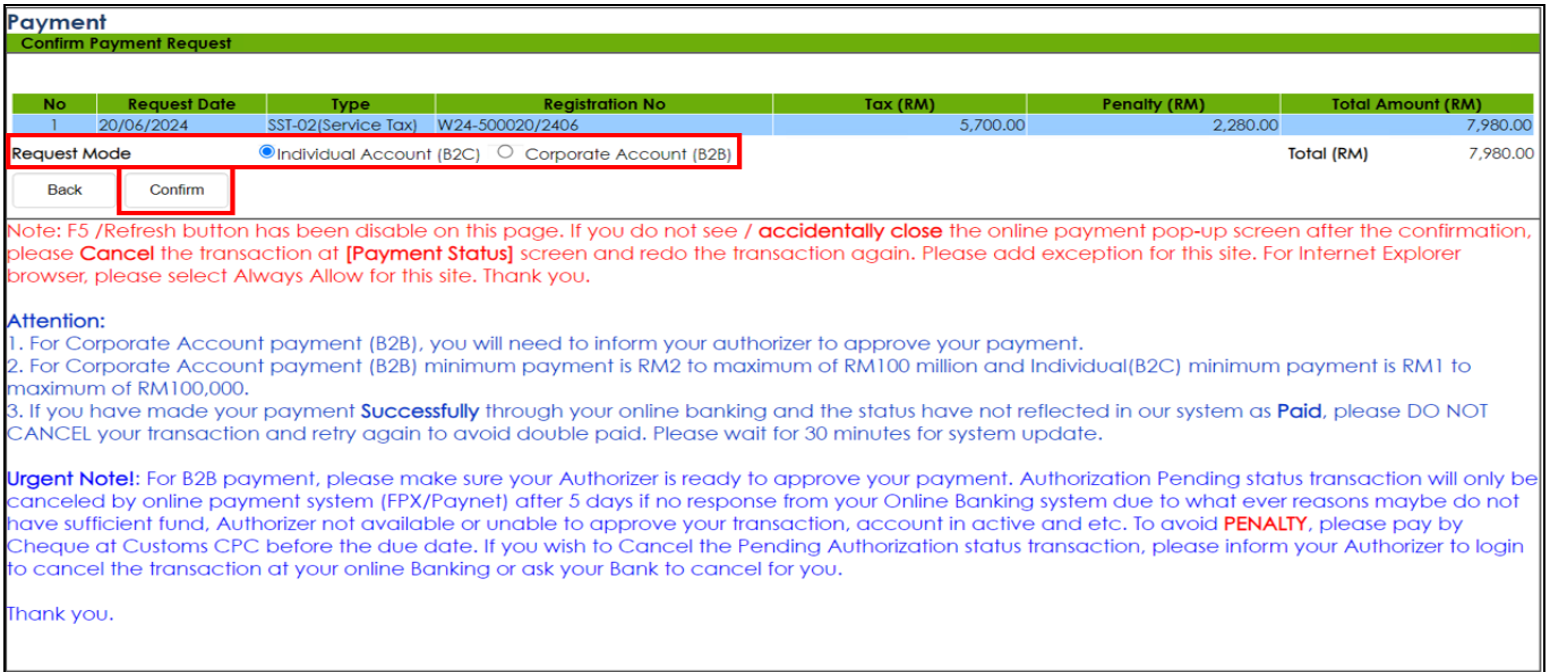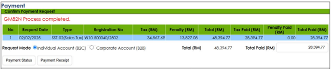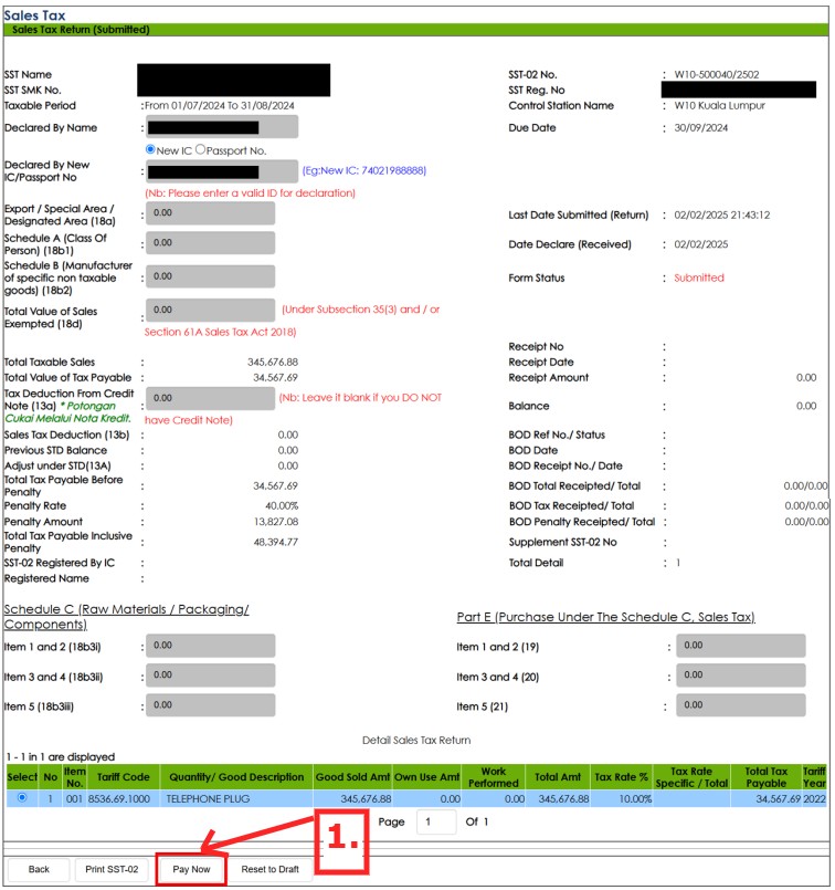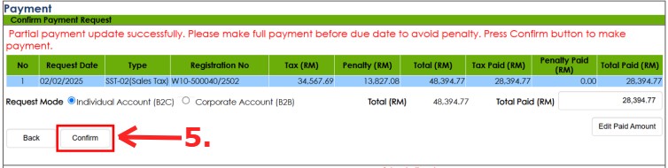 Guideline (Source from): https://mysst.customs.gov.my/assets/document/System%20Guides/MySST-UM-Partial%20Payment.pdf