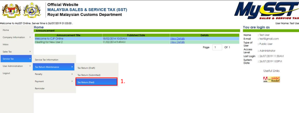 Click “Tax Return(Paid)” sub menu to view list Service Tax Return (Paid)