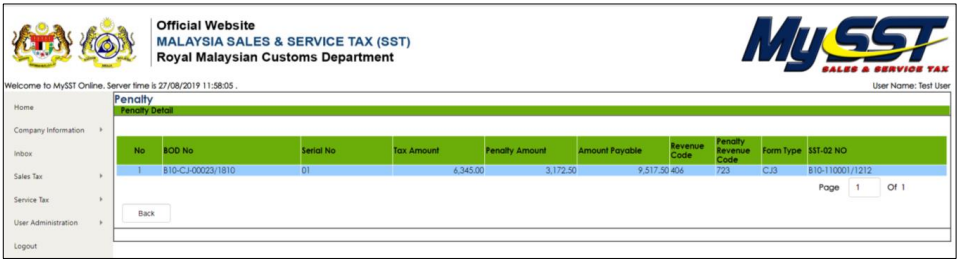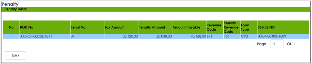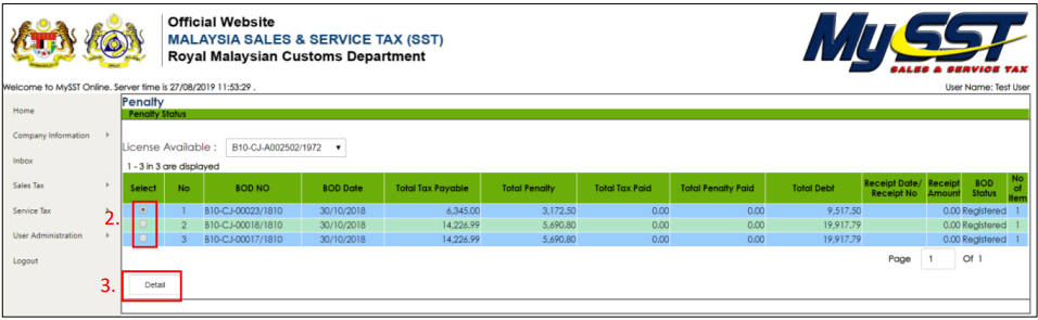 Click the radio button to select which Service Tax to view detail penalty (2)
