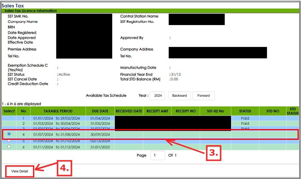 Select the taxable period you wants to declare (3) > Click “View detail” (4)