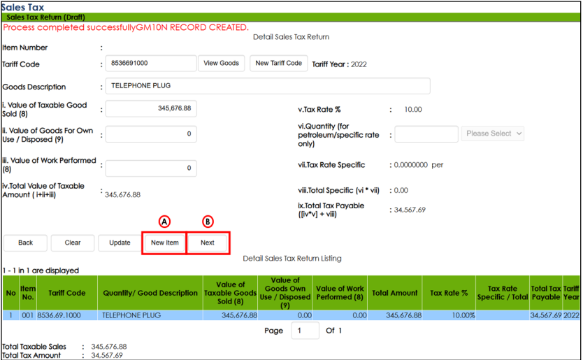 Click “New Item” to add other items (A), Click “Next” to proceed (B)