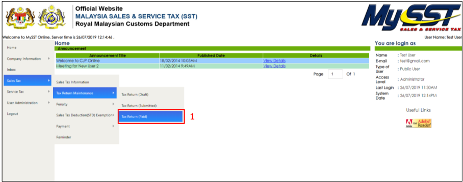 Click “Tax Return (Paid)” to view list of Sales Tax Return (paid)