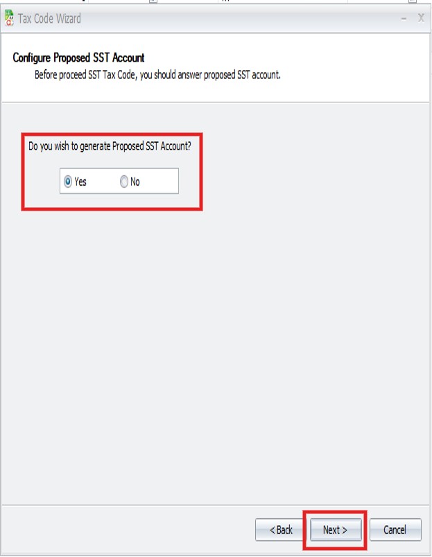 “YES” if you wish the system auto generate SST related GL accounts, “NO” if you want to create manually