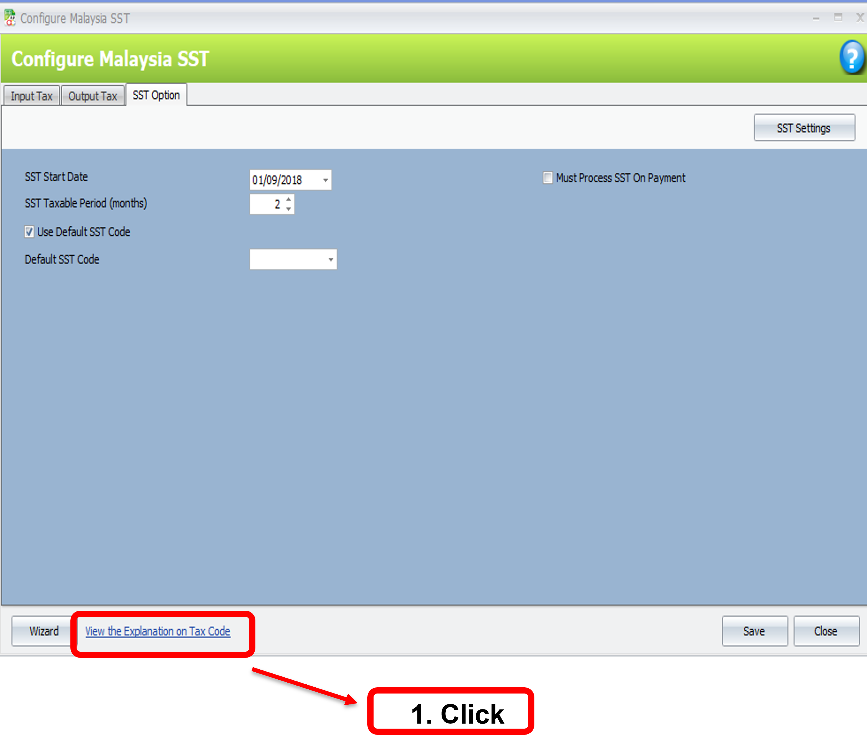 SST Option > Click “View the Explanation on Tax Code”