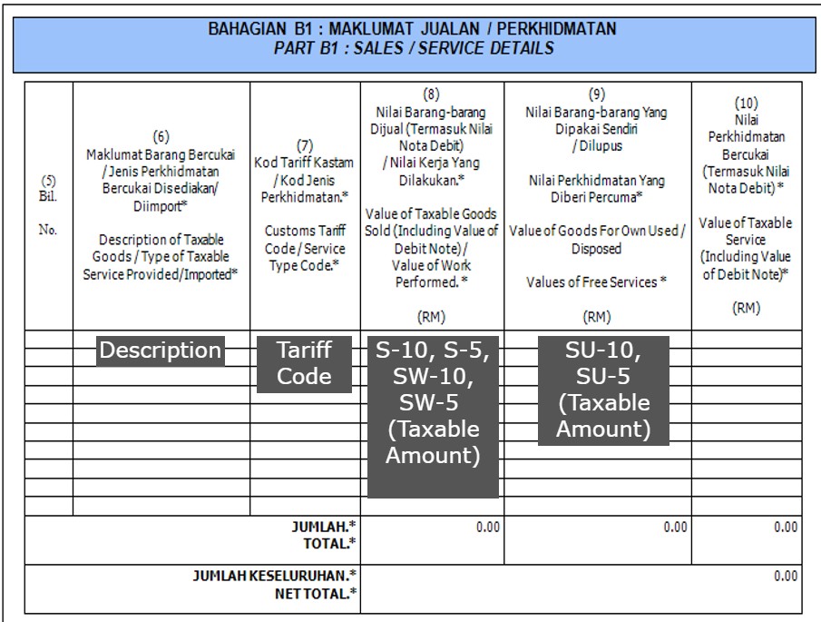 | S-10 | S-10 | 10% | Sales Tax | Sales Tax | Goods manufactured in Malaysia or imported with 10% tax | 8, 11b 13 (cn) |