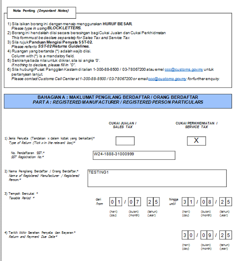 3.3 SST 02 Form Mapping (Services Tax)