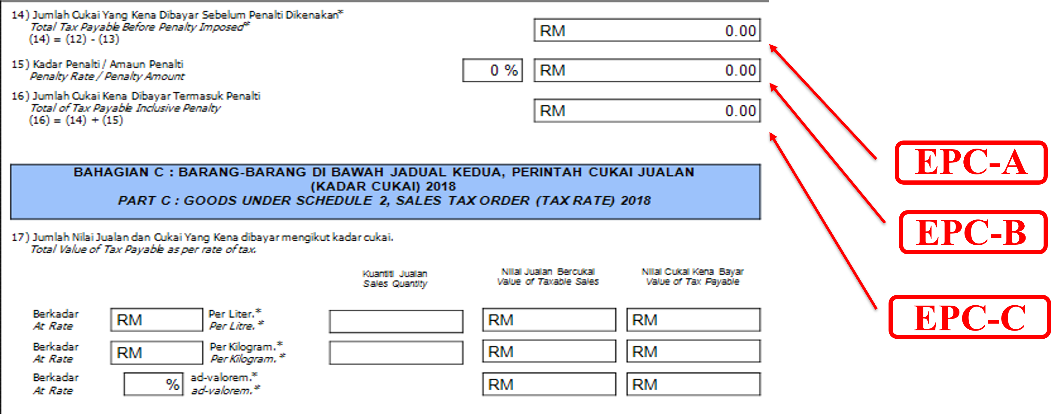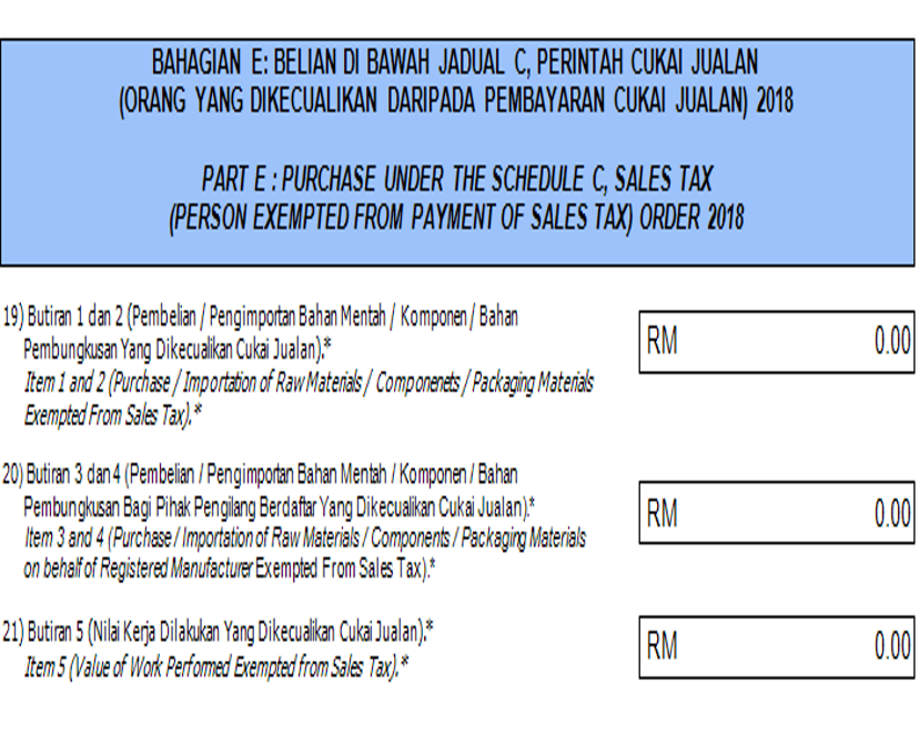 | EEM | EEM | 0% | Sales to Export Market | Nil | Export of goods outside Malaysia | 18a |