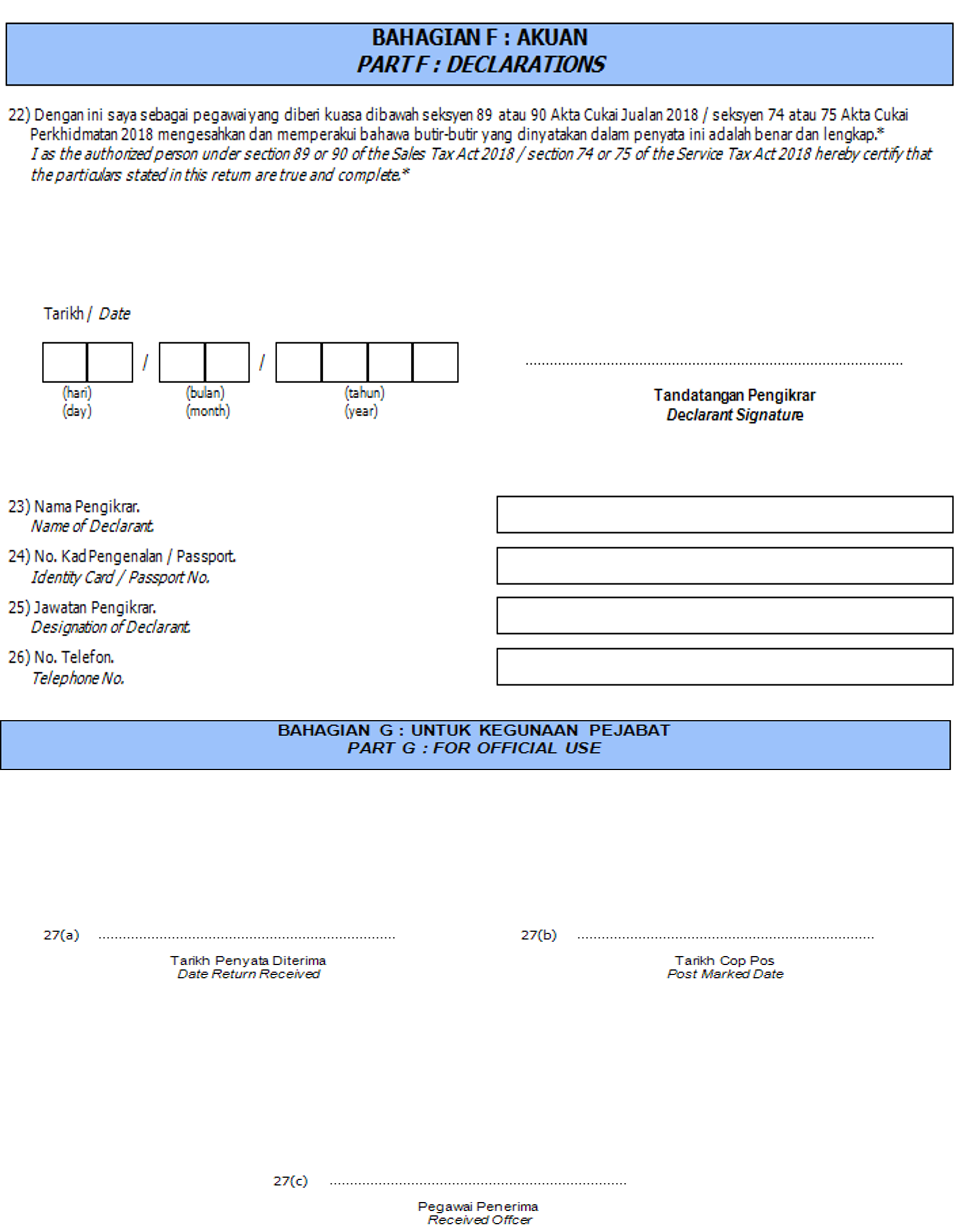 | Example | If a company previously charges RM50, 000 SST but later wrote off the invoice as bad debt, this can now be disclosed separately under Item 13(d) |