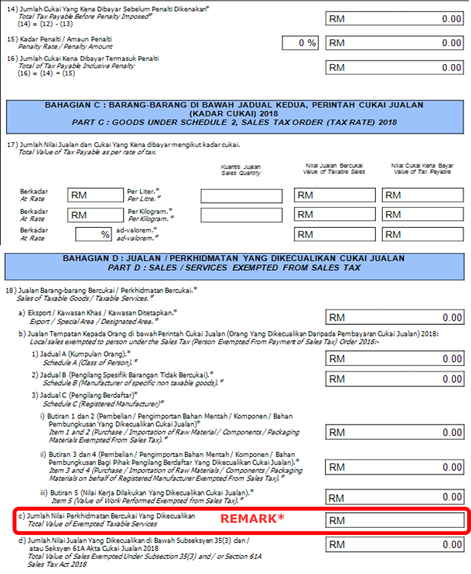 REMARK* – Section D: Item 18(c) Exempted Taxable Services
