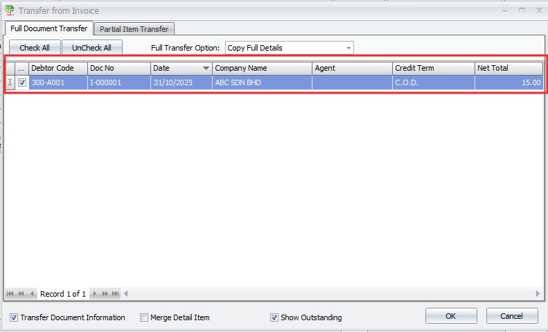 8.2 Transfer Sales Invoice to Sales Credit Note