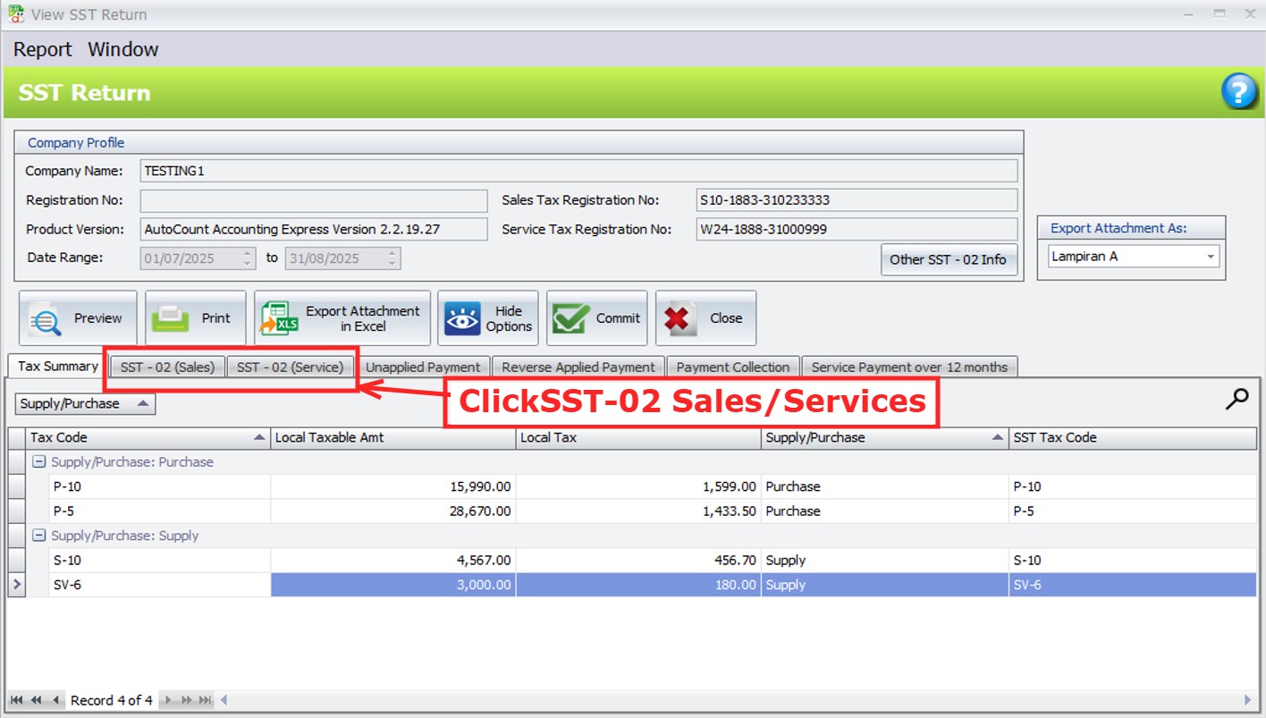 - The processor also helps generate the SST-02 report, which is required for SST submissions